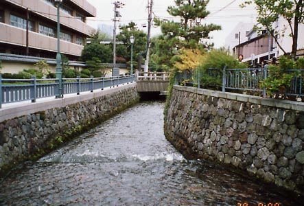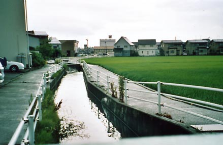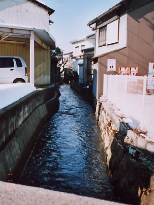 鞍月用水は犀川上菊橋の上流の油瀬木(菜種油をとるために水車を回さなければならず堰を作った)を取水口として、城南、菊川町、鱗町、里見町、香林坊、長町、芳斎町、六枚町、西念、念法寺、鞍月小の近辺を幾筋にも分かれながら、大野川河口へと繋がって行く。何箇所も暗渠部分があるが、香林坊から三社までの区間は近年になって綺麗に整備され用水を見ながら散策できるようになった。特に夕暮れ時に香林坊に向かって歩きながら用水の流れを見ると、これから何か新しい事が起こるかもしれないという期待と不安感がないまぜになって時間の経過とともに胸一杯に広がっていく。 1644~1648年頃、油屋与助によって作られたというこの用水は菊川近辺の農業用水、油車では製油、精米業の水車の動力用に、それからさきの三社までの街中は防火用水、生活用水として利用された。三社を起点に鞍月用水は一部は大野庄用水と合流し、一部は北安江、西念、鞍月などでは幾筋の分流を作りながら農業用水として利用されている。 川幅は1.5メートル〜6.4メートルで、かっては金沢市の西北部13ヶ村、8千石を潤す大用水であった。 総延長は15キロ内外か。当時はともかく、今、油瀬木に立ち留まって犀川を眺めているとこのあたりの河川堰や堤防は貧弱で一旦大雨が降ったりして堤防が決壊したりすると、このあたりから菊川、新竪校下、片町あたりは土地が低くすべて水没する危険性をはらんでいることをこの用水探索で感じた。 ・加賀藩時代の絵図である。鞍月用水は図面の右下から上に伸びて辰巳用水と合流していることがわかる。 ・辰巳用水と合流した鞍月用水は絵図の下真中あたりから、村井家と長家の間を縫いながら流れて行く。 右の上へ真っ直ぐ延びている分流水は升形を通り越して東別院の横に沿って流れてゆく。この用水はよく氾濫して近辺はよく床下浸水した。現在は暗渠になり、流れもなくなったのか。 これから紹介する写真は現在の上流から下流にかけの順番である。 ・鞍月用水の取水口、油瀬木である。対岸から写したのでみにくいが、正面に水門が確認できる。 ・鞍月用水取水口の近景である。遠くにみえるのは上菊橋である。右は城南である。 取水口から流れは暗渠になって人々の目に触れなくなる。 この流れを利用して藩政時代はいろいろな産業が発祥した。染物業もその一つだろう。 ・これまで暗渠部分が殆どだったが、菊川町の周辺になって民家の間を縫うように流れは走って行く。 水量はかなりあり、流れも速い。 ・用水は菊川町を過ぎ、石川県幸町庁舎の前を通りすぎ鱗町交差点を横切り鱗町になって再び表に顔を出す。 このすぐ下流に水車を利用した製粉場が昭和40年代まであったように思う。 藩政時代から続く水車を利用して菜種油を絞った製油業の多田油店もこの近くの竪町にある。 ・西へ向かって走る用水は里見町周辺を竪町にある教会の横へと繋がって行く。 ・竪町の教会まえを通りすぎた流れは、宇都宮書店前で辰巳用水と合流する。 ・合流した二つの流れは蛇の目寿司本店の前を通り、繁華街の香林坊交差点を横切り香林坊109の前に顔を出す。 五木寛之作詞、弦哲也作曲で歌われる「金沢望郷歌」にも「小松砂丘の句が残る 過ぎ行く歳月よ 街は変われど辰巳の用水は今日も流れて・・・・」と詩われるが、正確にいえば辰巳と鞍月の二つの流れはということになる。 香林坊の交差点を暗渠で通過した用水は右折して柳が植えられた用水沿いの街を勢いよく流れてゆく。水量も豊富で街路も整備されて、一昔前この用水を跨ぐようにして飲食店があり大小便が垂れ流しであったなど知る人も少なくなった。 ・合流した二つの流れは、何故か鞍月用水と呼ばれている。辰巳用水は城の中で終わりということだろう。 香林坊109の裏手から流れは中央小学校へ向かって流れて行く。 ・左にあるこの小学校の土地は以前は倉庫精練という染色会社のあったところである。 まだ環境問題がやかましくなかった頃、この用水に染色のあとの水を流すものだから川の色が赤になったり、青になったり、黄色になったりした。ここは藩政時代は家老の村井家の屋敷のあったところである。 この豊富な用水を利用して明治になってから、日本では富岡製糸場につぐ規模の金沢製糸場が開業した。 繰糸機100台、女工200人というから相当な規模である。 この製糸場に隣接した長家屋敷あとでは金沢撚糸会社が発足した、やはりこの鞍月用水を利用した事業だった。 この用水を利用して津田式力織機を動かし、後の津田駒工業の礎となった因縁のところである。 ・鞍月用水が最も脚光を浴びた場所を通り過ぎ、流れは再び民家の裏へと回遊するように進んでゆく。 ・鞍月用水の六枚町交差点の水門管理棟である。 ここからしばらく開渠がつづくが、すぐに暗渠になる。 ・表通りに面したところは殆どが修景されている。これから先のところで分流があり、一部は大野庄用水と合流し木曳川
